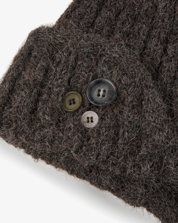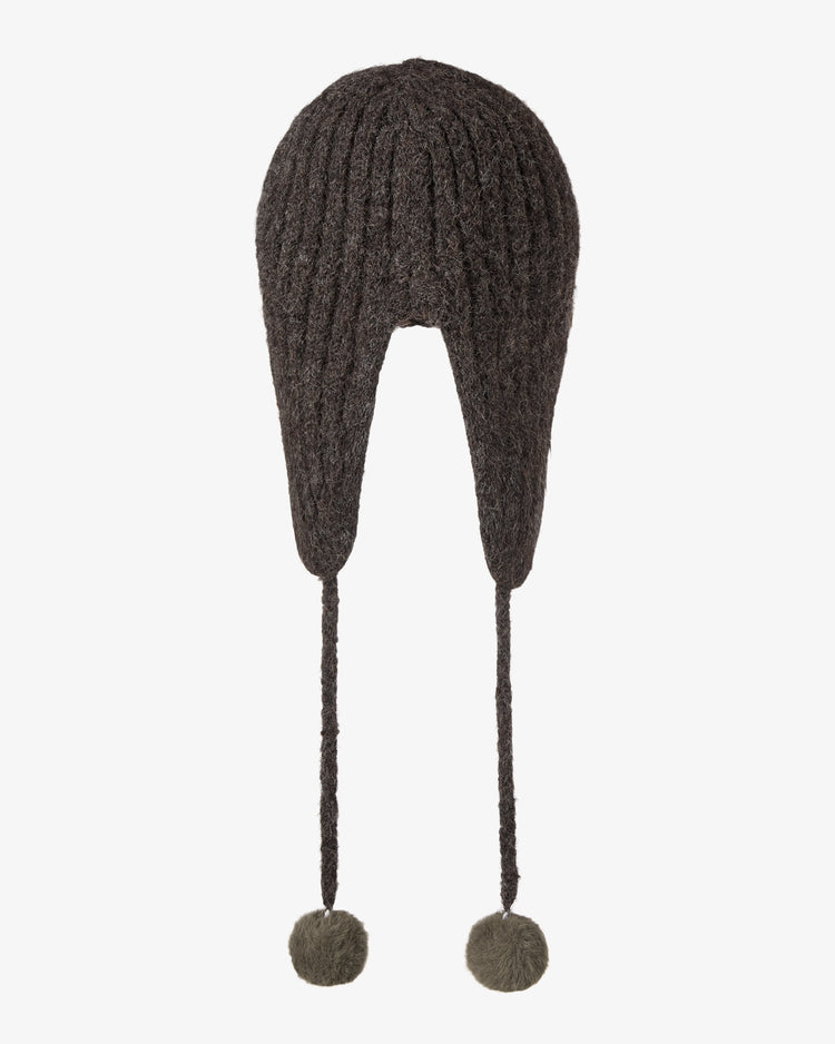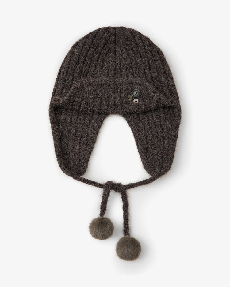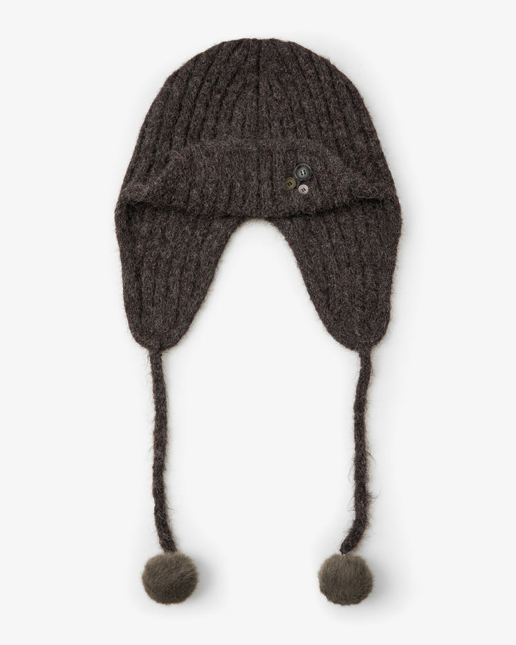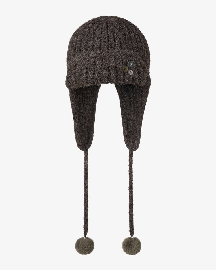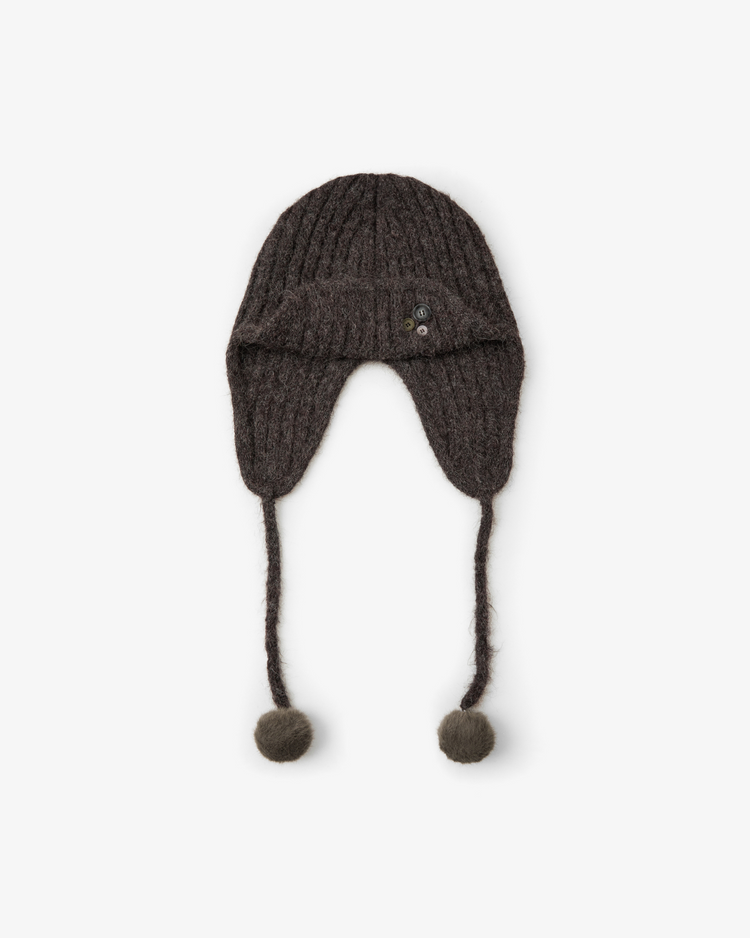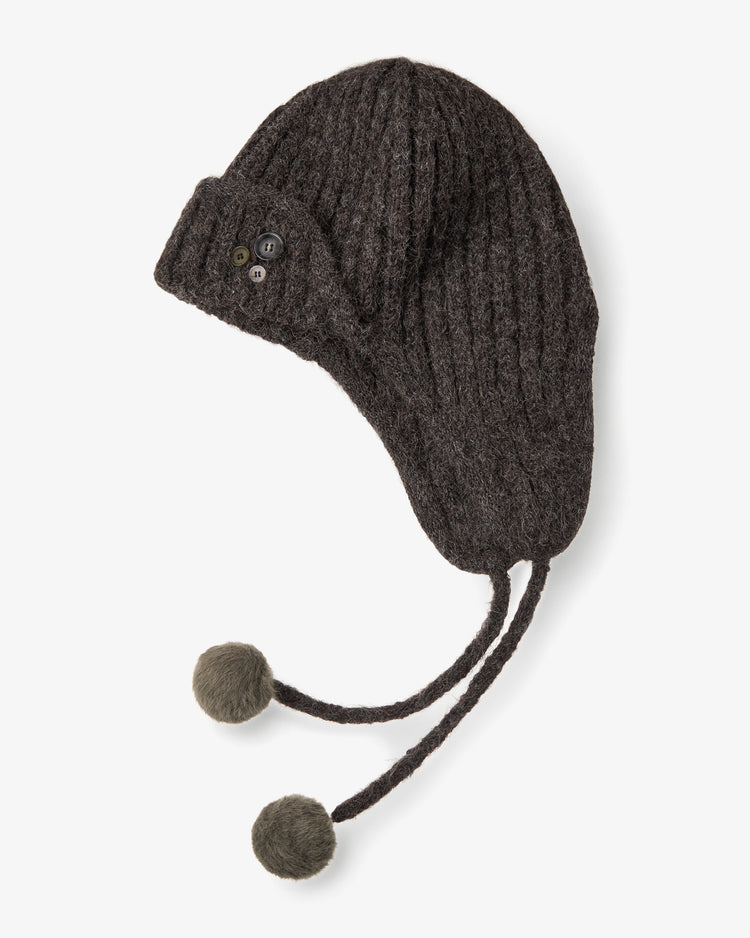 【11月上旬お届けアイテム】BUTTON KNIT TROOPER BEANIE [DARK BROWN]