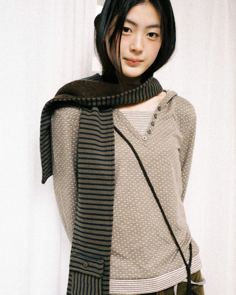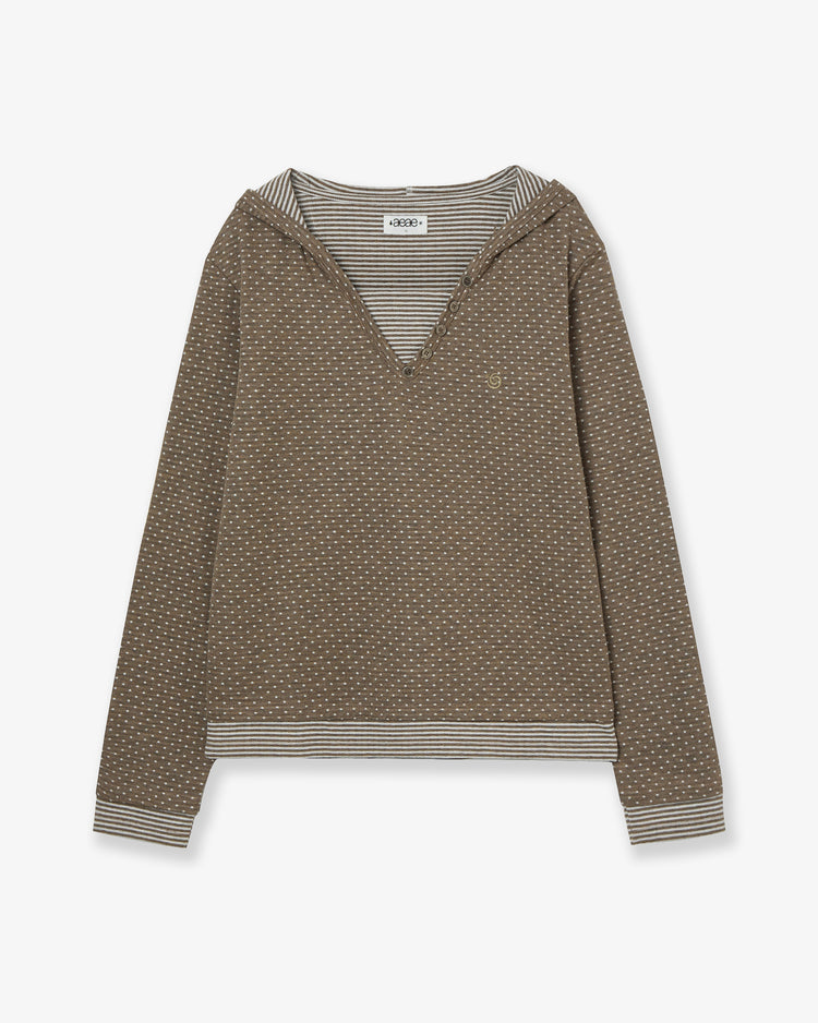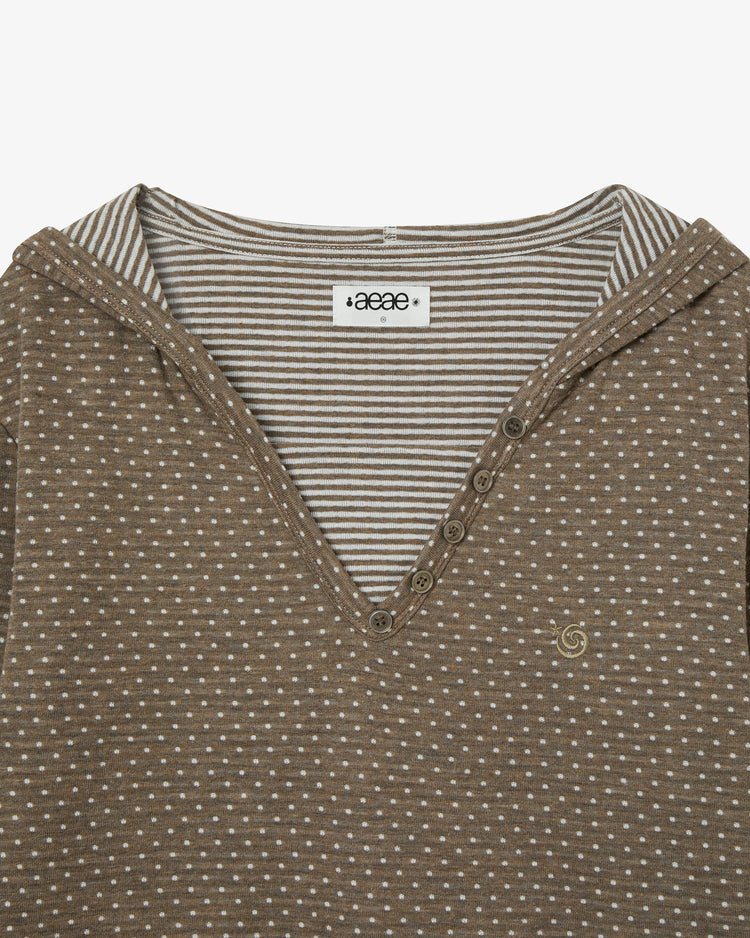 HOODED HENLY NECK TEE [KHAKI]