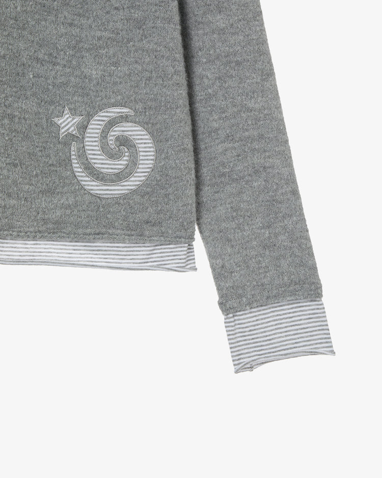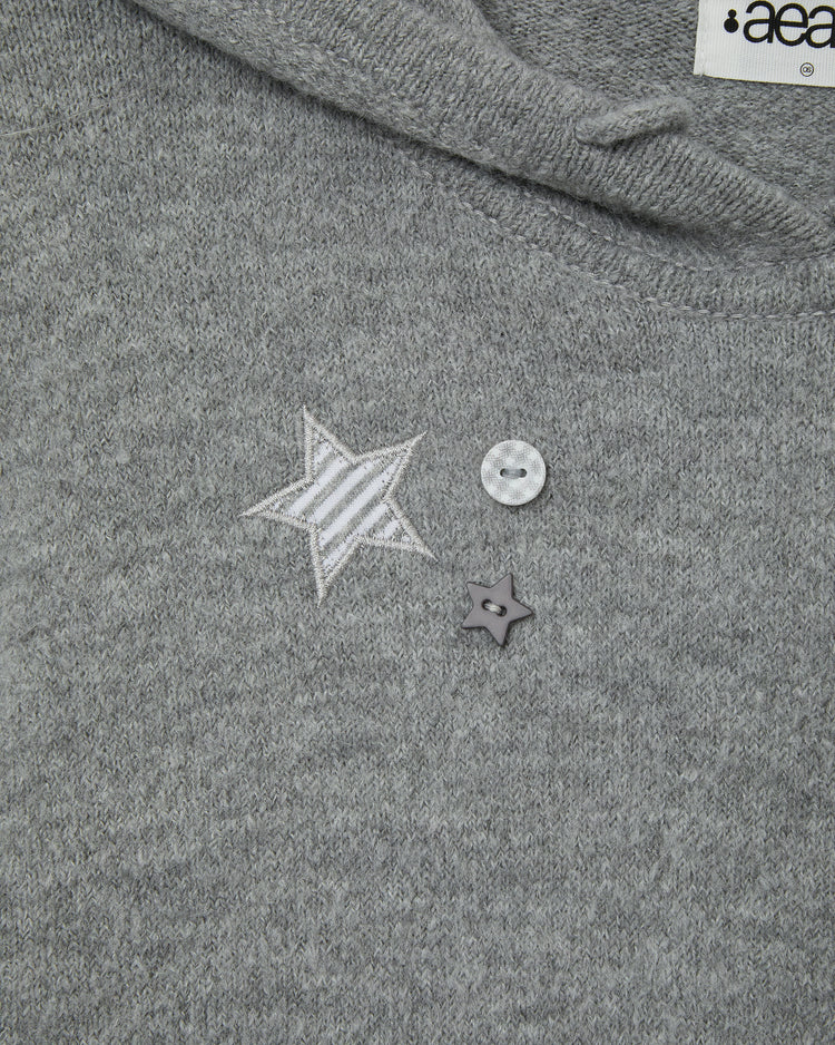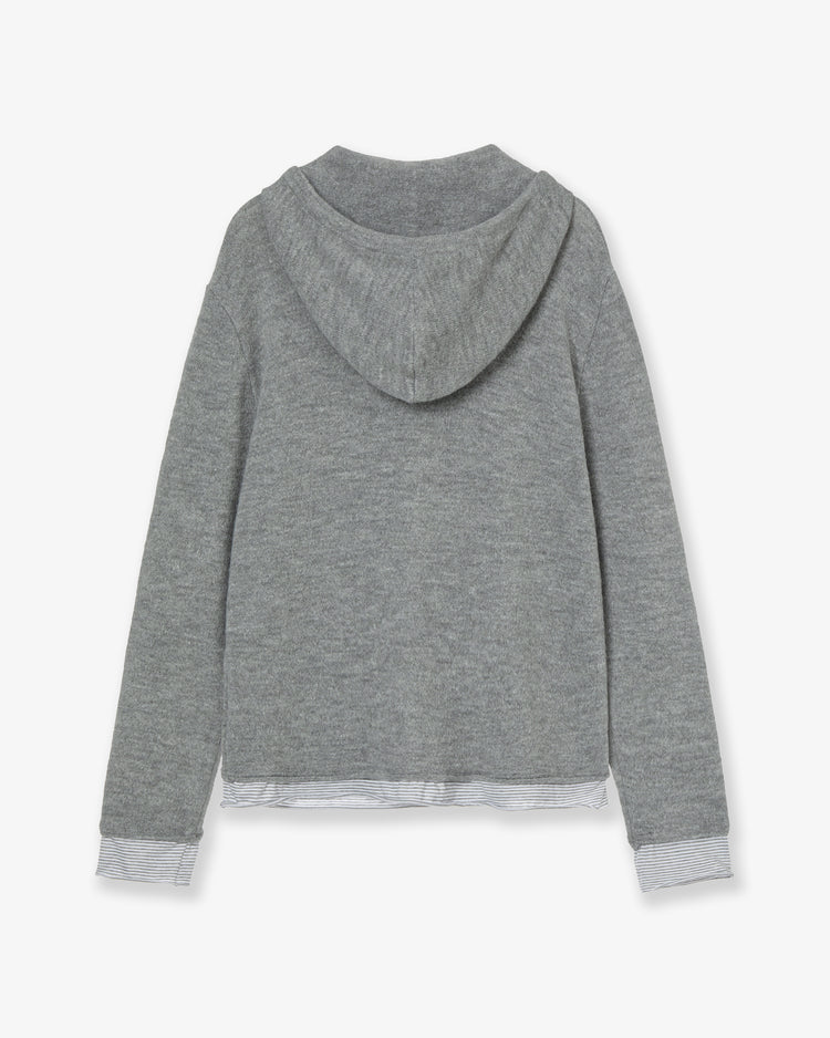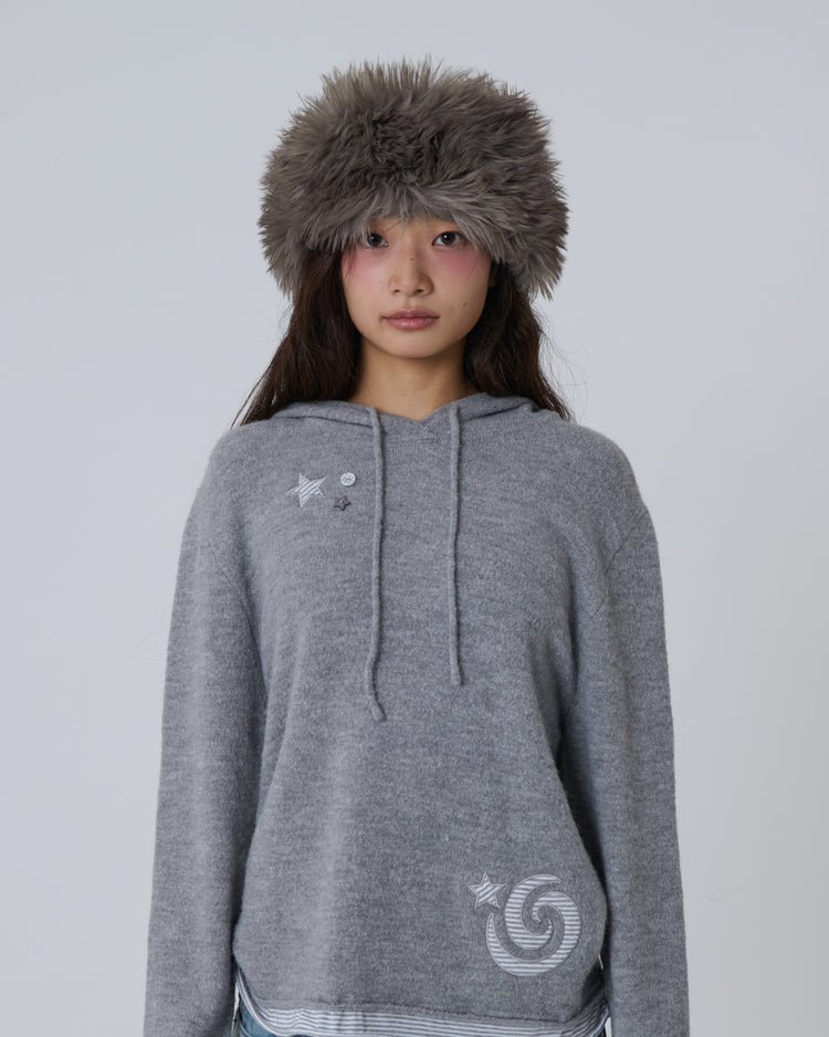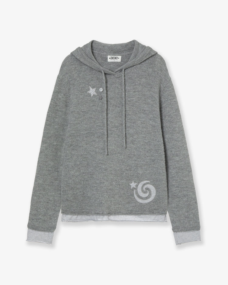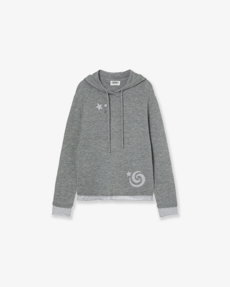 【11月上旬お届けアイテム】LAYERED KNIT HOODIE [GREY]
