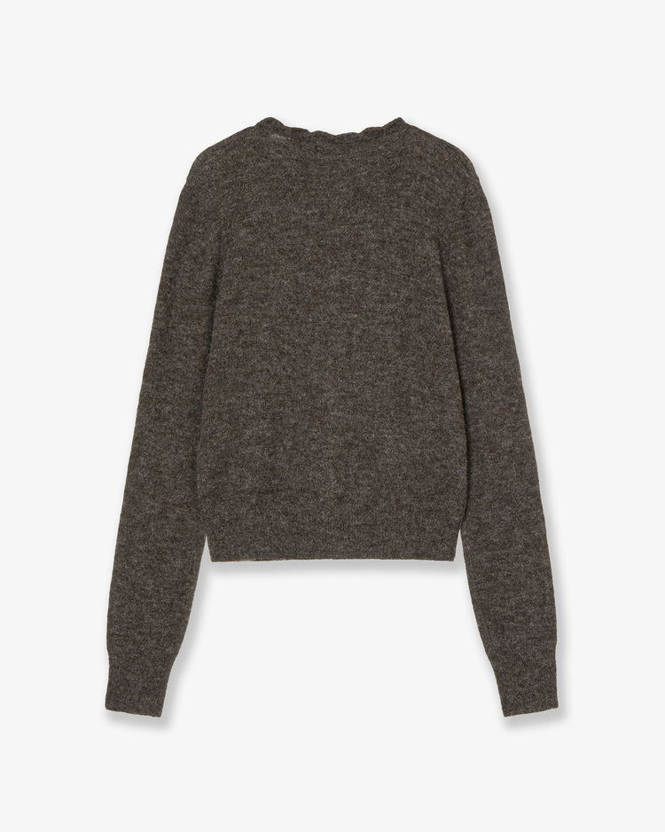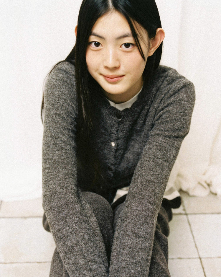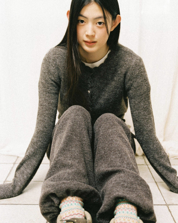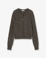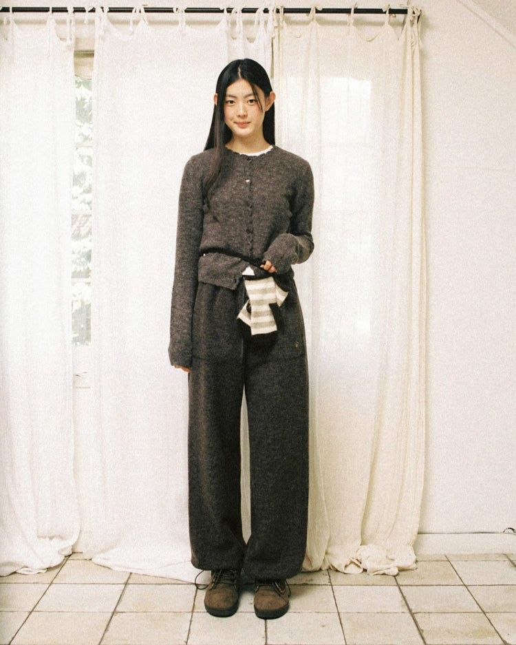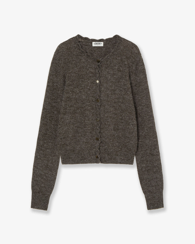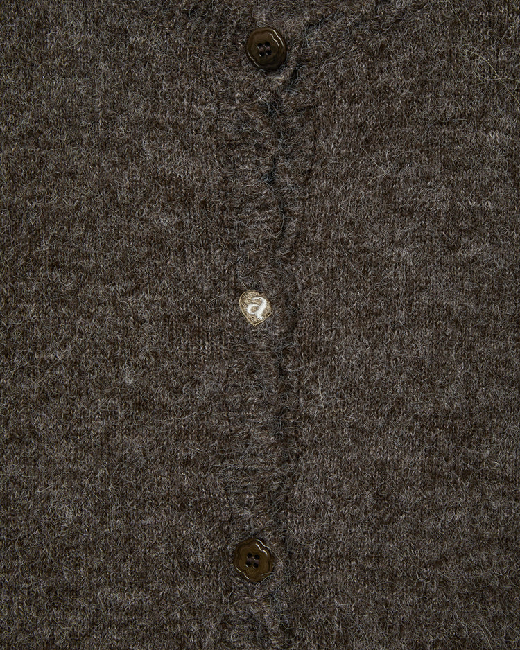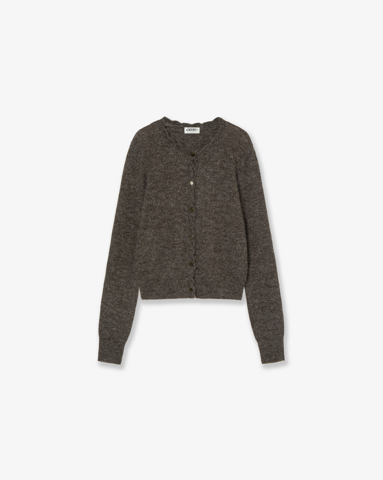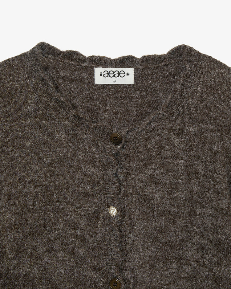 SCALLOP ROUND NECK CARDIGAN [DARK BROWN]