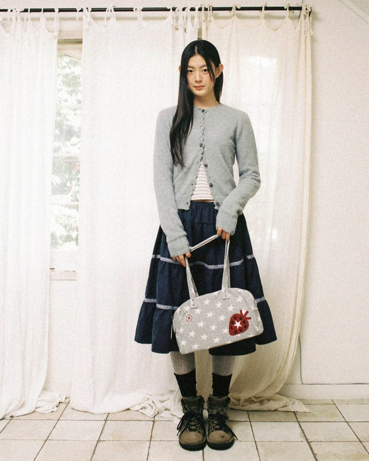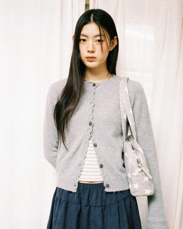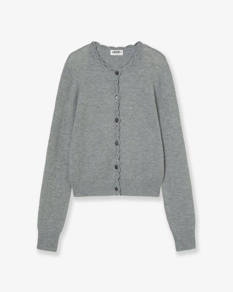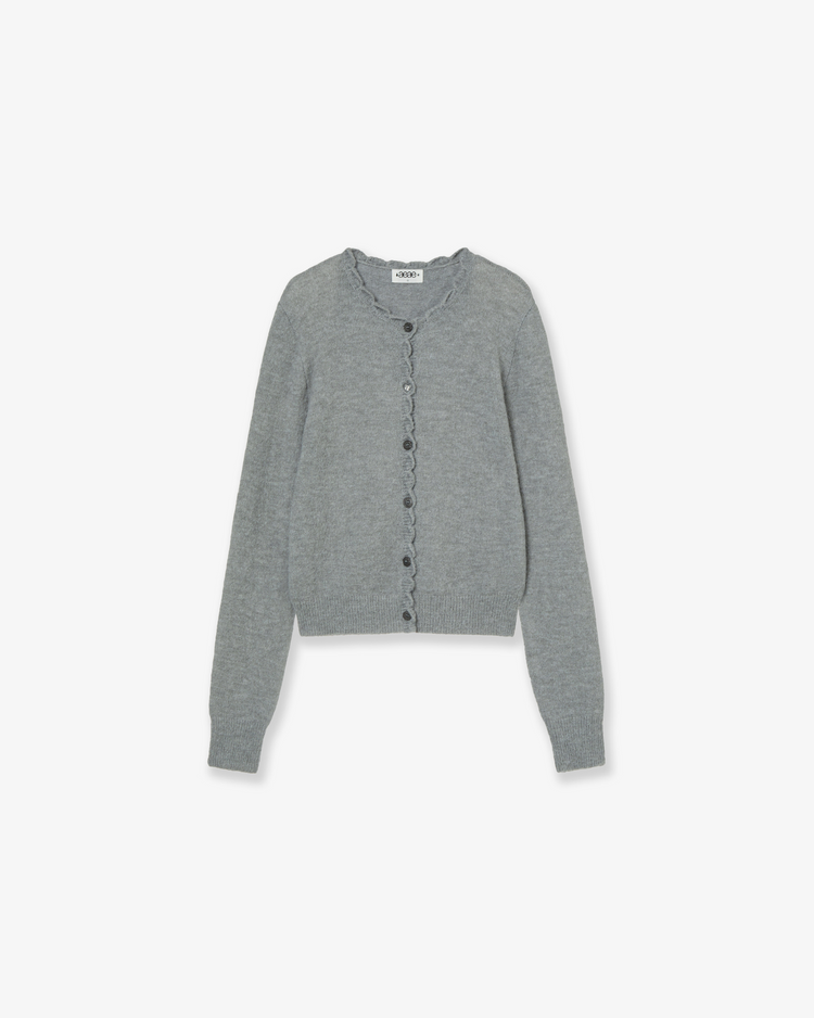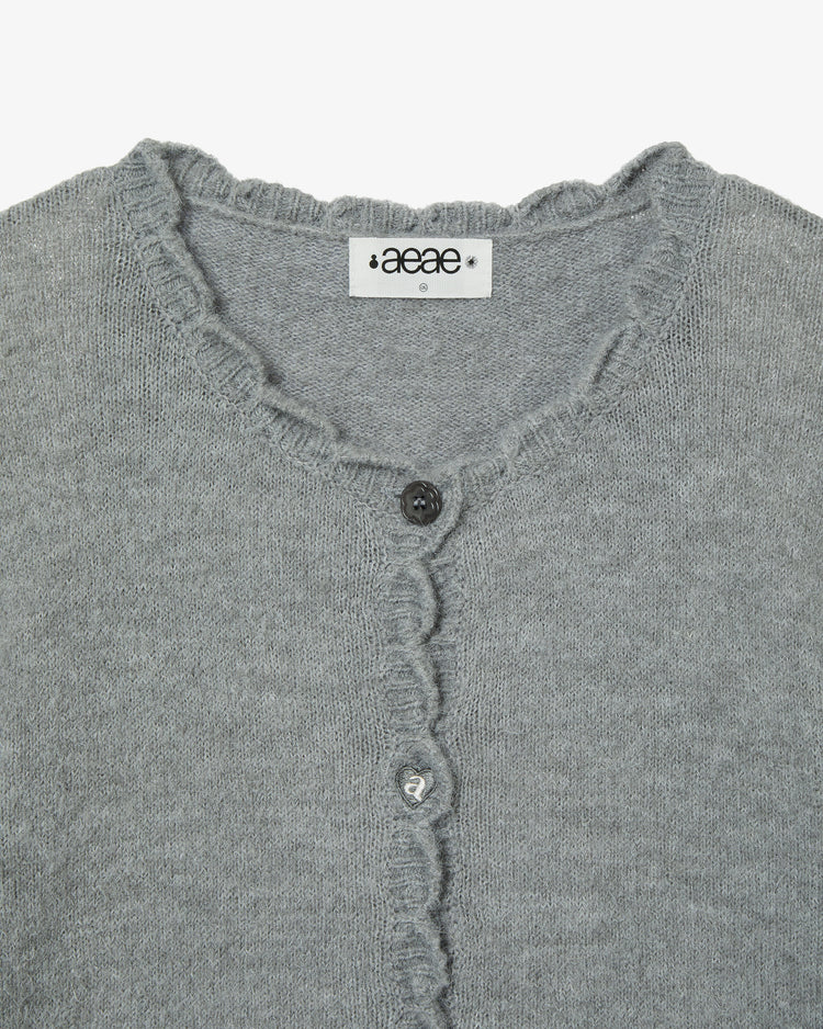 SCALLOP ROUND NECK CARDIGAN [LIGHT GREY]