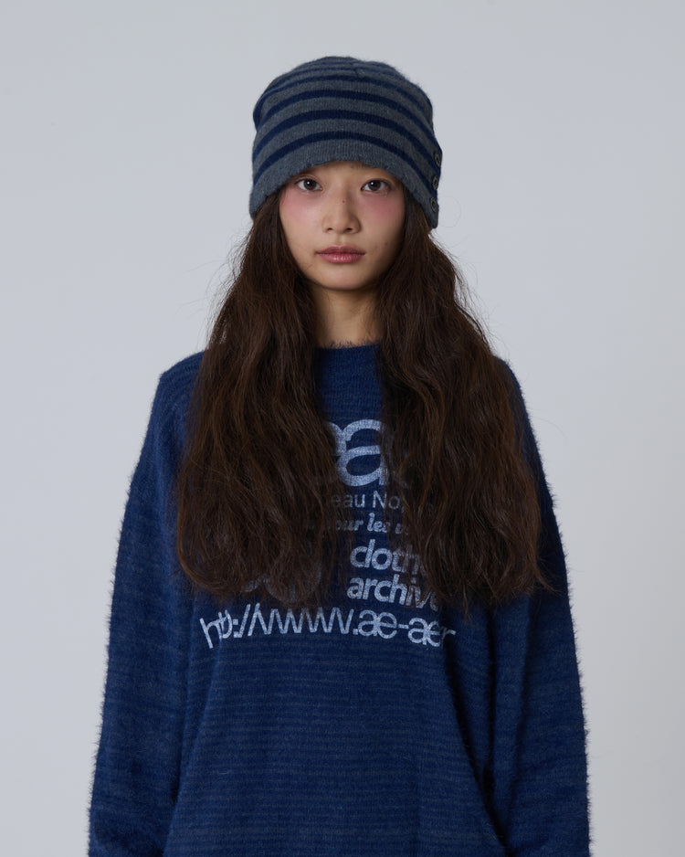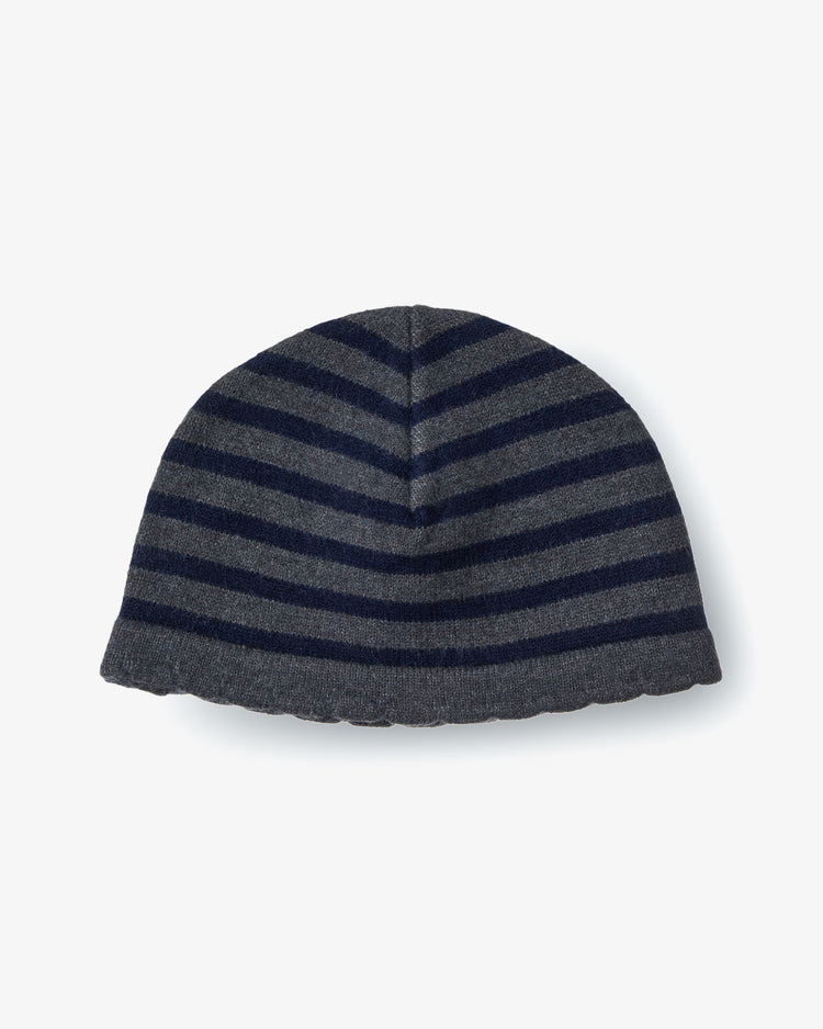 【11月上旬お届けアイテム】STRIPE BUTTON BEANIE [GREY]