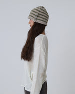 【11月上旬お届けアイテム】STRIPE BUTTON BEANIE [KHAKI]