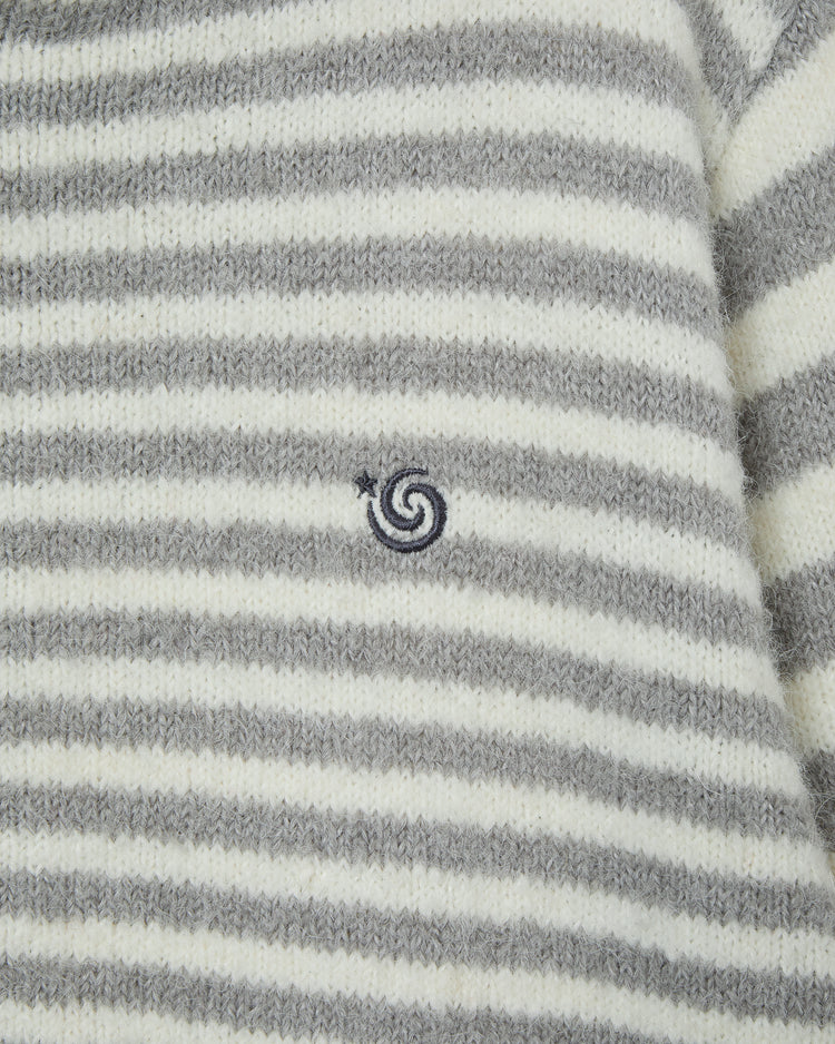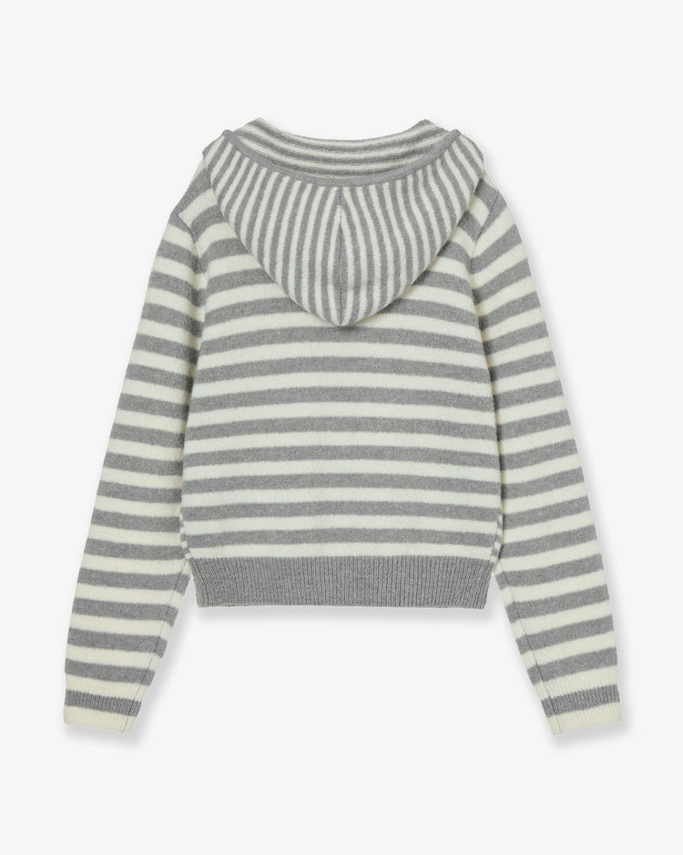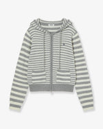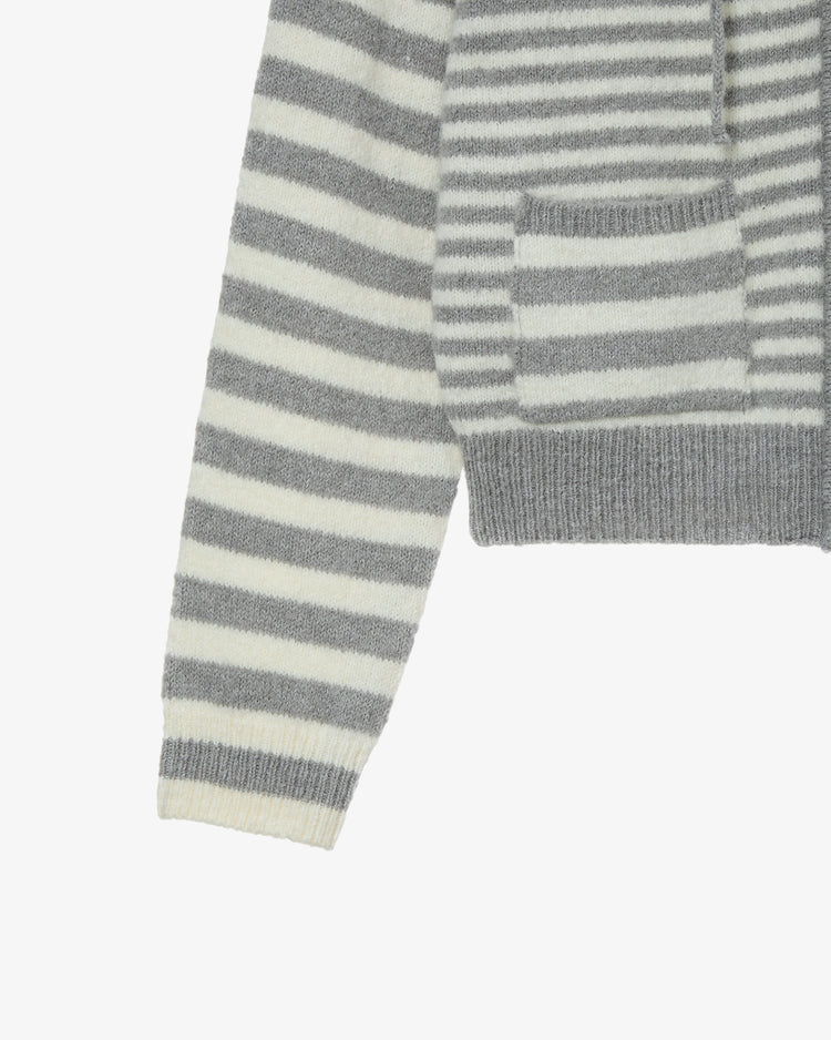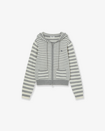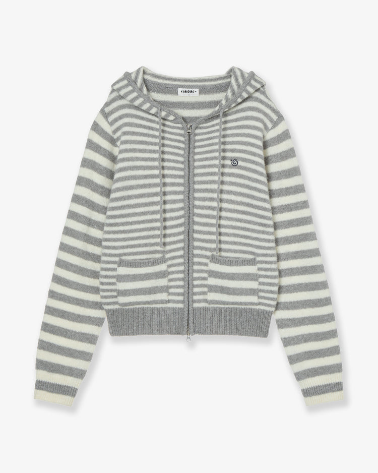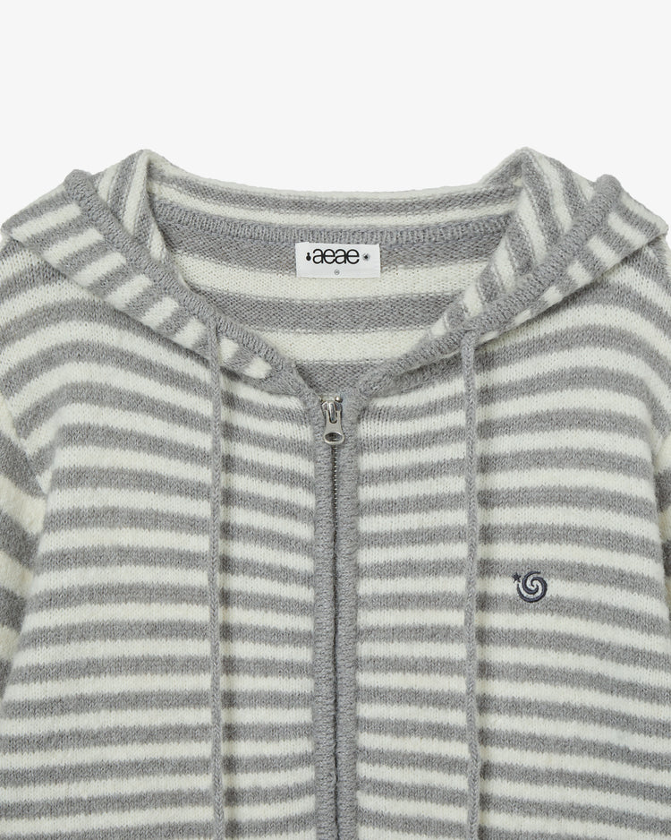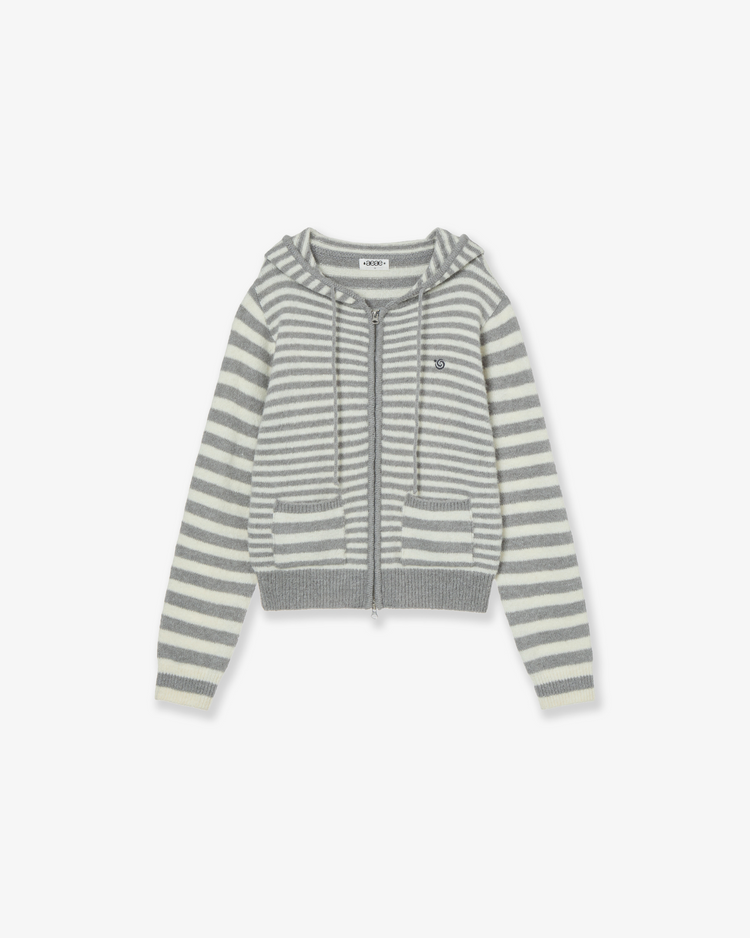 STRIPE HOOD KNIT ZIP UP [LIGHT GREY]