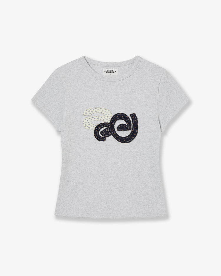 APPLIQUE FLOWER LOGO TEE [LIGHT GREY]