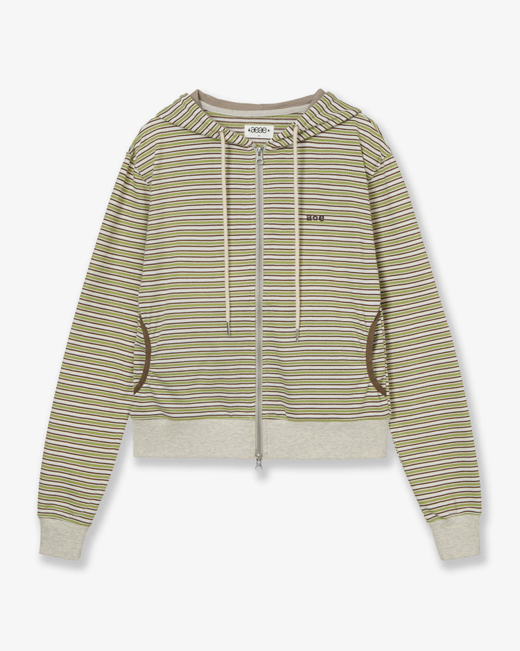 STRIPE HOODIE ZIP-UP [GREEN]