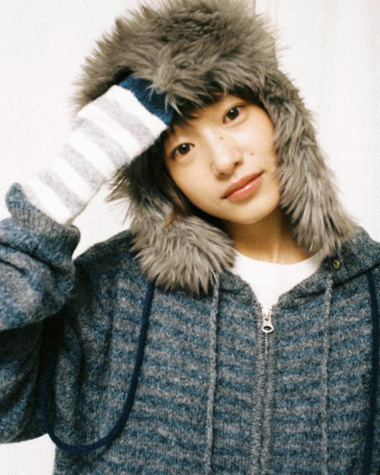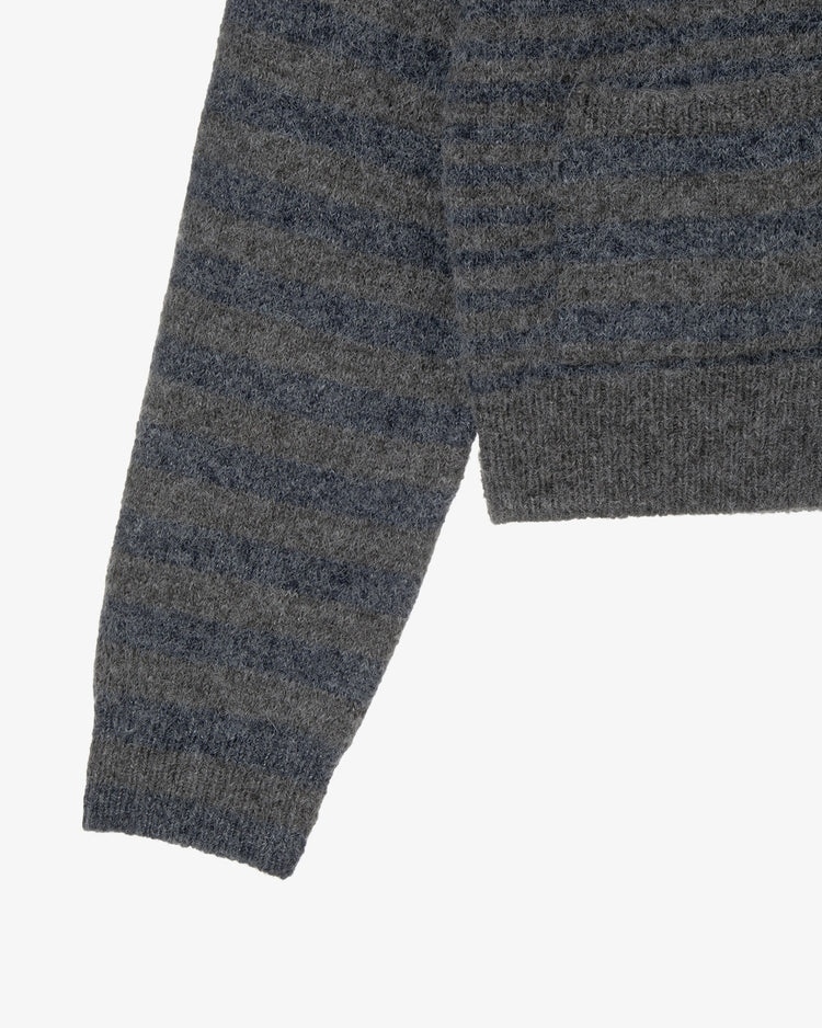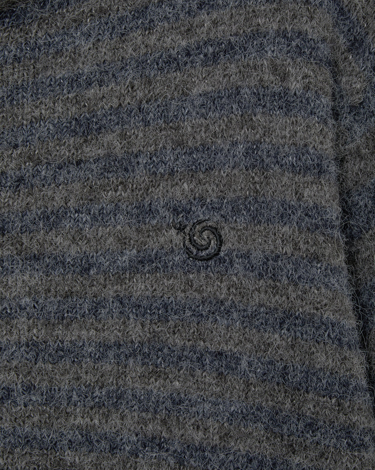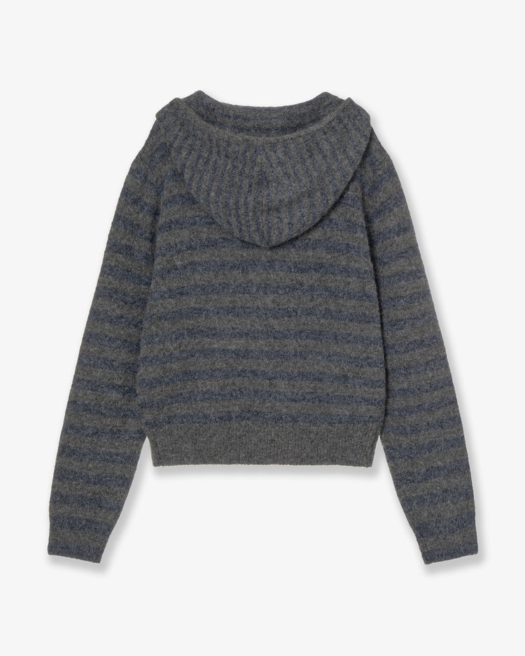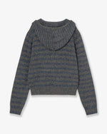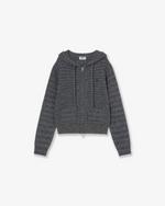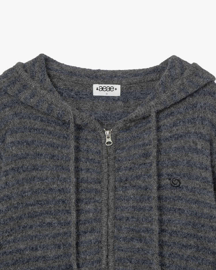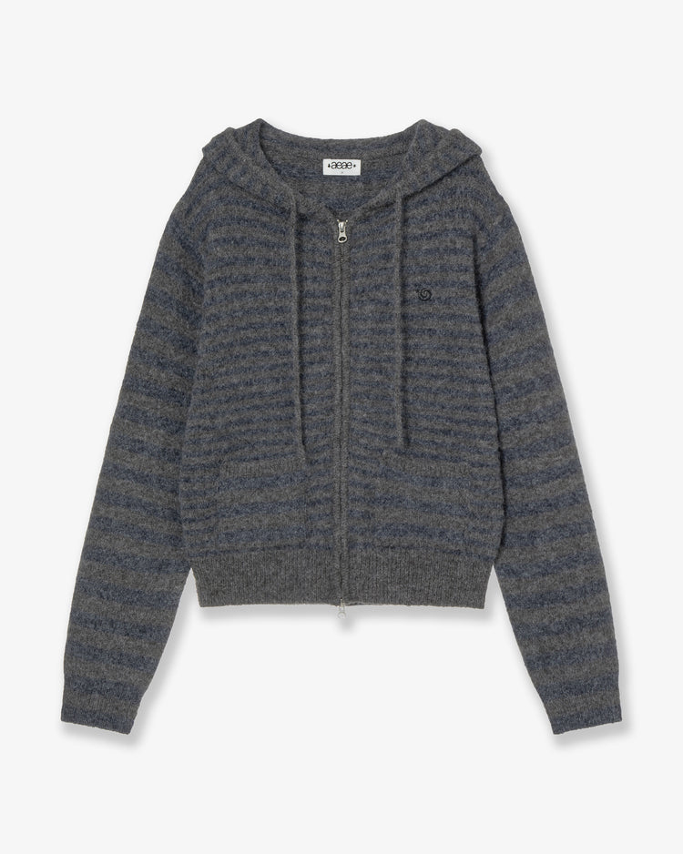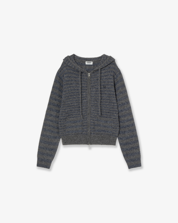 STRIPE HOOD KNIT ZIP UP [NAVY]