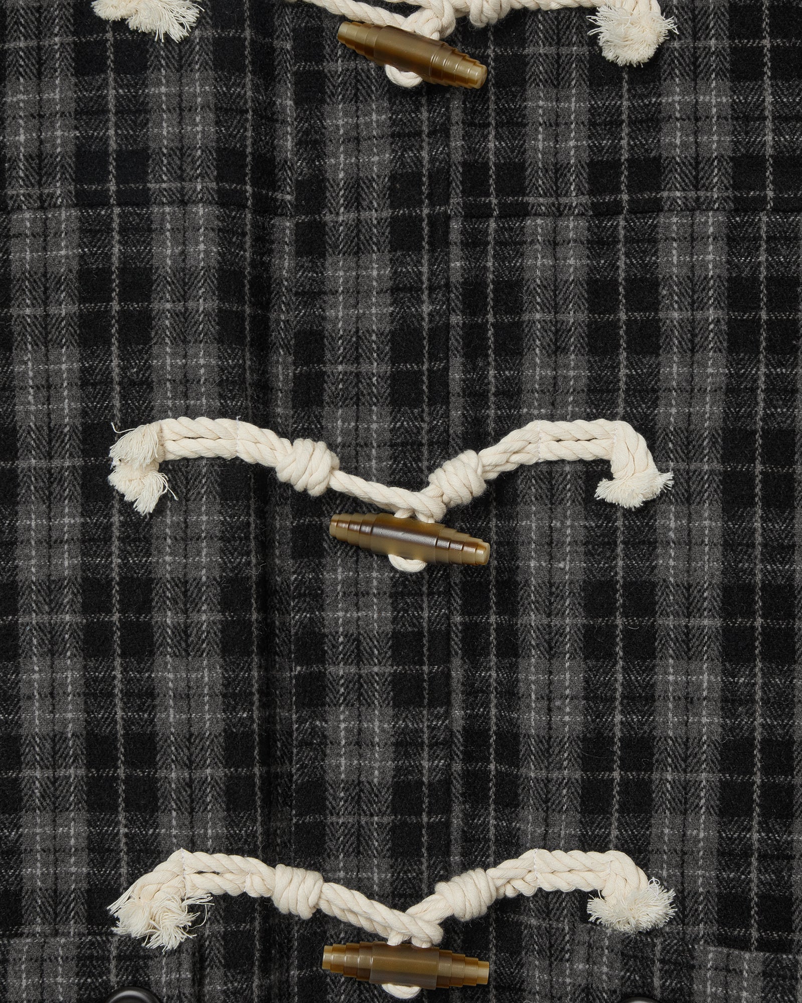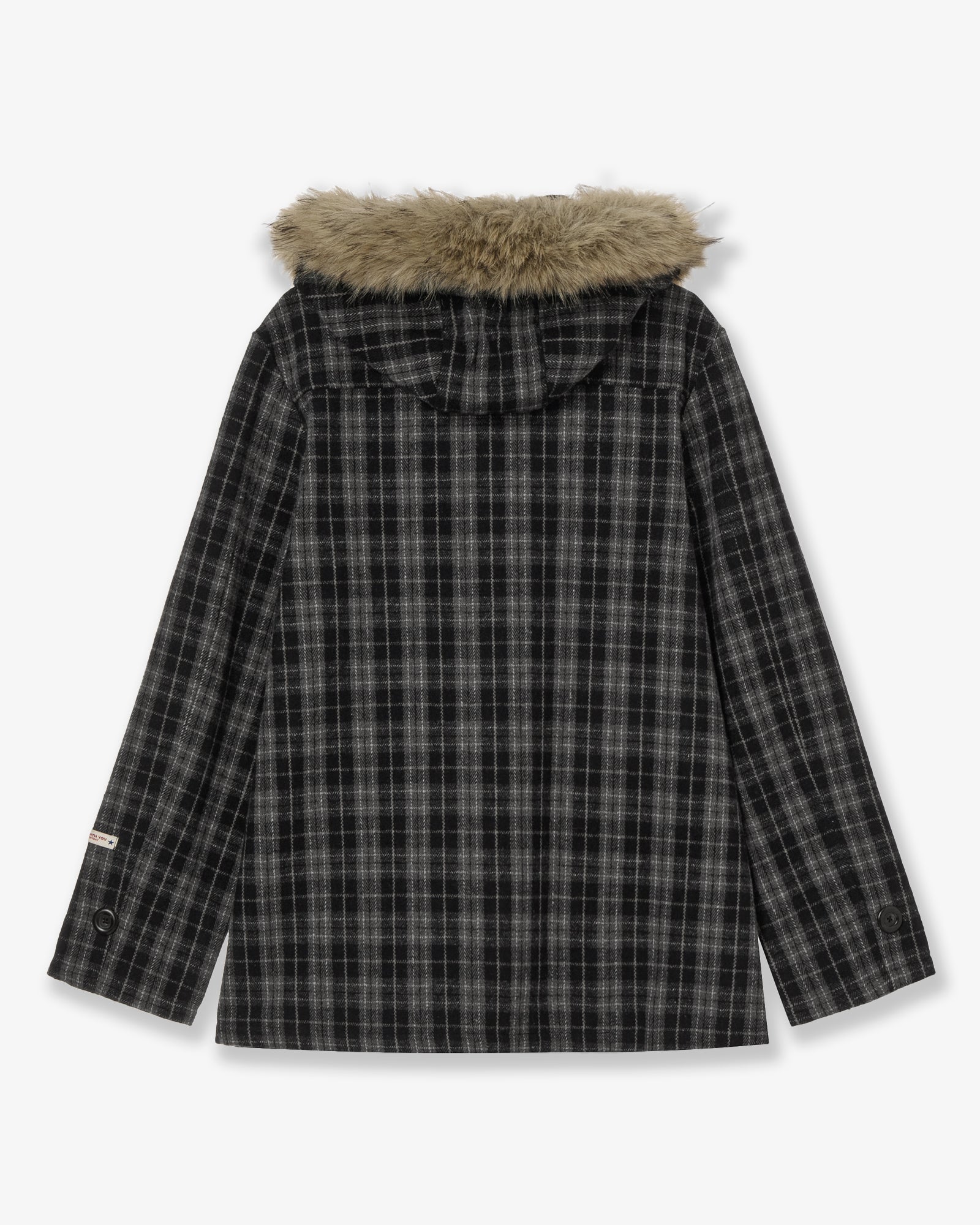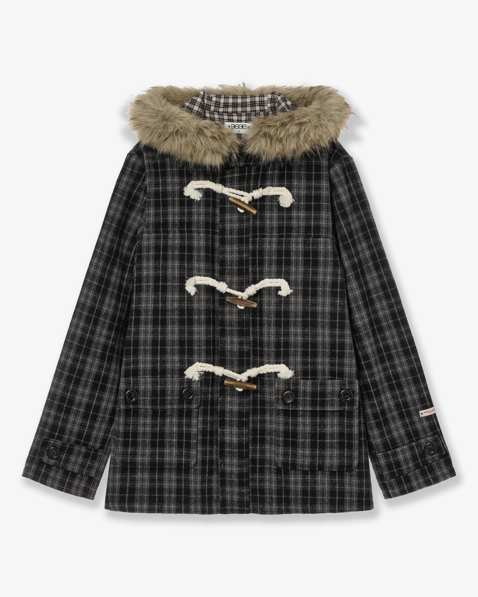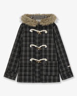 FUR HOOD DUFFLE COAT [CHECK BLACK]
